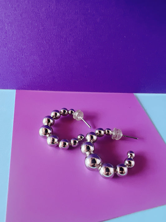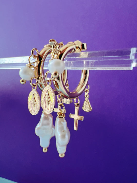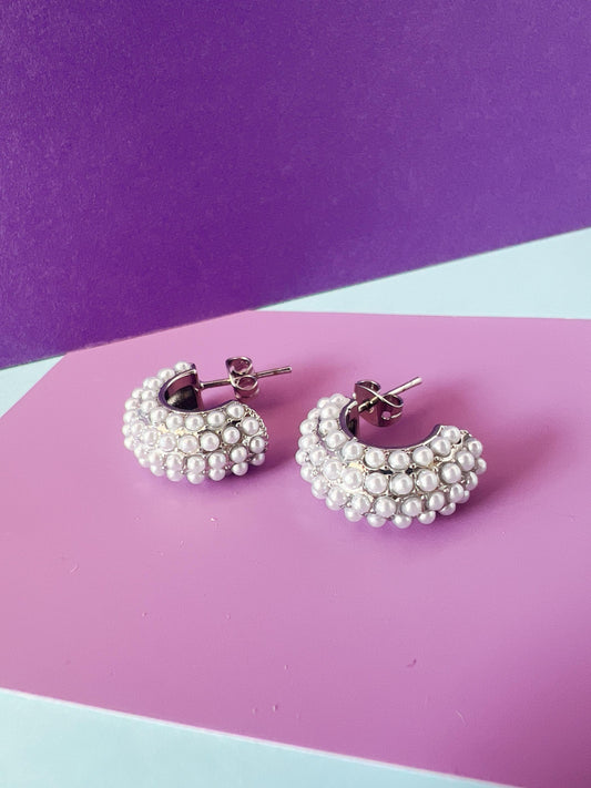 Zarcillos- SILVER HOOPS & MINI PERLAS